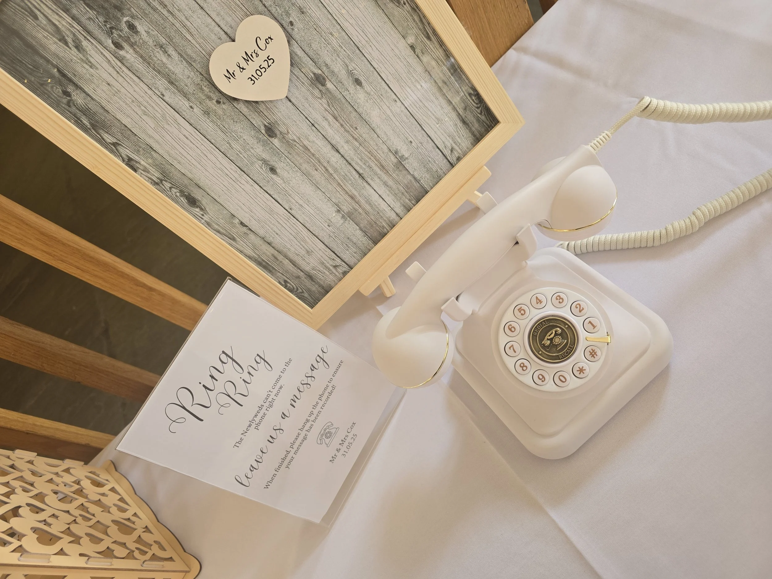 A unique spin on your traditional guestbook, audio guestbooks add a unique spin giving your guests a chance to leave more heartfelt, funny, and emotional messages you can listen back to after the wedding. We often see these used in combination with a more traditional written guestbook.